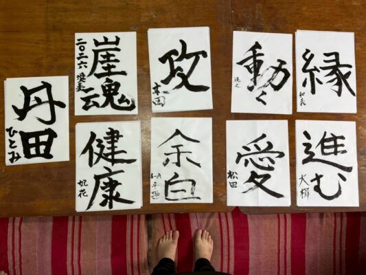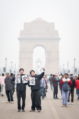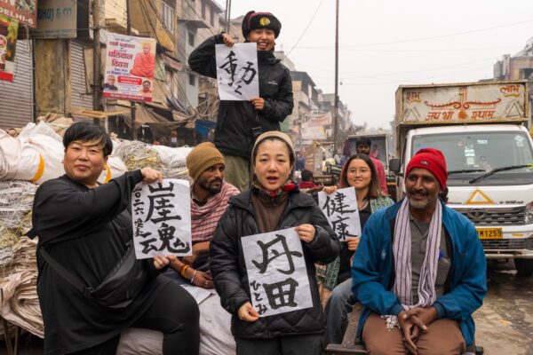 日付が変わって2026年1月1日。今年の抱負の漢字をお客様、スタッフも含めて、習字で記載しました。各々が『習字とインド』を掛け合わせた、サンタナ付近の好きな場所で写真を撮るというイベントを行いました!(上記の写真は書き初め前に皆んなでの円陣となります笑)