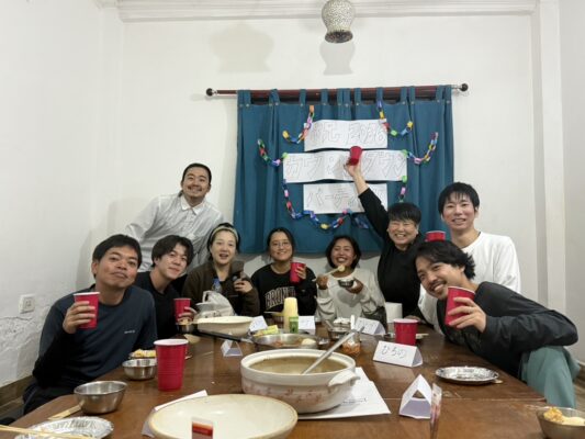 宿泊いただいたお客様の多大なるご協力をいただき、お鍋、手巻き寿司、お雑煮を作り、インドカレーと一緒に食卓を囲んだ時間は笑顔溢れる暖かい時間になりました!