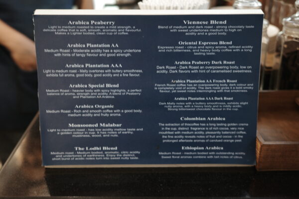 浅煎り→深煎りの順に豆の説明がずらり