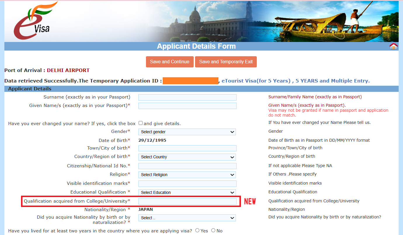 (e-Visa申請が承認された場合、インド政府のe-Visa制度の下でインド入国が許可されていることが確立されます。インド到着時、記録は入国審査官によって検査されます)Biometric Details (Photograph & Fingerprints) of the applicant shall be mandatorily captured upon arrival into India. Non-compliance to do so would lead to denial of entry into India.