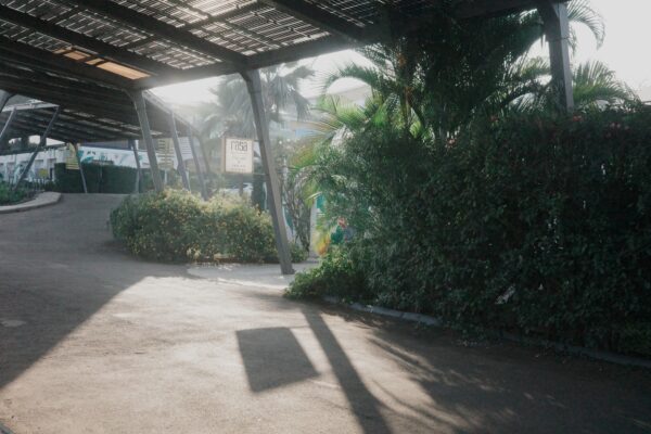 到着後、カートに乗って滞在する建物まで移動
