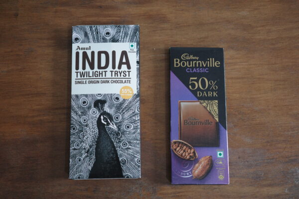 ちなみに、Amulは125g で表示価格 200RS、Bournivilleは75g で 表示価格120~150RS。