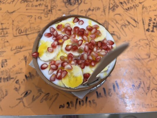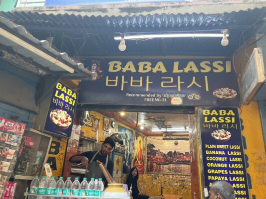 小腹が減ってきたので近くのラッシーを飲みに行きます。ここは「ババラッシー」このお店の「ザクロバナナラッシー」がすごく美味しいです!