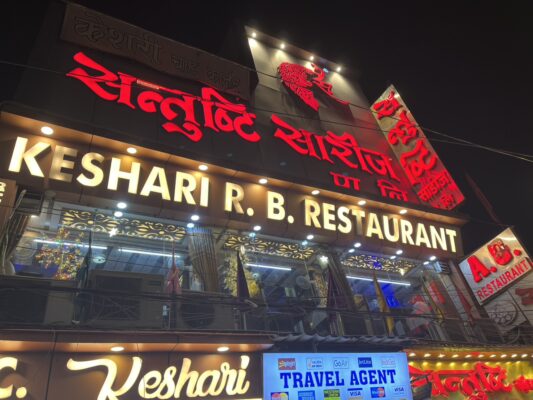 お腹が極限にまで減りました。本日の夕食はここ!バラナシサンタナから徒歩10分に位置します「ケシャリレストラン」。